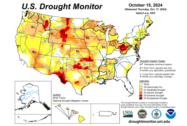 Many agricultural areas across the United States and Canada experienced considerable drought during the 2024 growing season and are coming into the fall fertilizer application period with dry soil conditions (Figure 1). Growers have asked if they can apply their fall anhydrous ammonia (82-0-0) into soils with such low moisture values. Below are some helpful tips to answer that question.