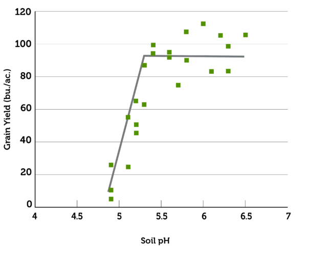 Symptoms of soil acidity may not be apparent in crops. There may only be minor effects on nutrient availability. Yield decreases may not be observed until pH drops below some critical threshold for a specific crop. Once that threshold is passed, however, especially once aluminum reaches toxic levels, effects on crops can increase sharply up to complete loss of productivity. And because pH is usually variable across the landscape, effects may be seen in some parts of a field and not in others.7